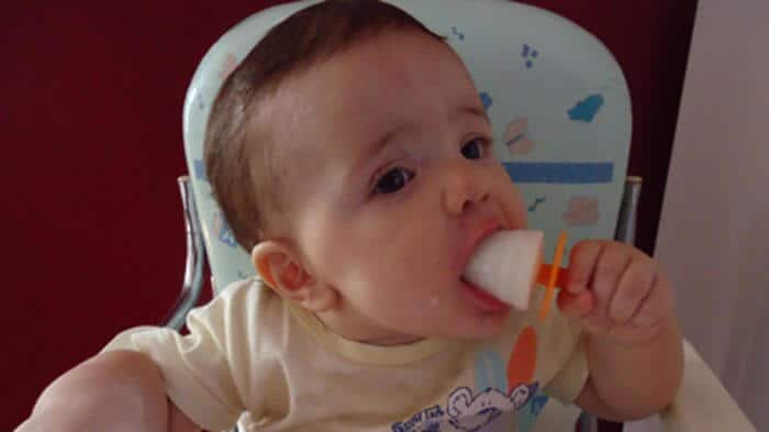 Assim, esta mãe recorreu a uma solução completamente natural. Tudo o que ele fez foi extrair o leite e colocá-lo em um molde de sorvete, colocá-lo na geladeira e esperar até obter a consistência de um sorvete.